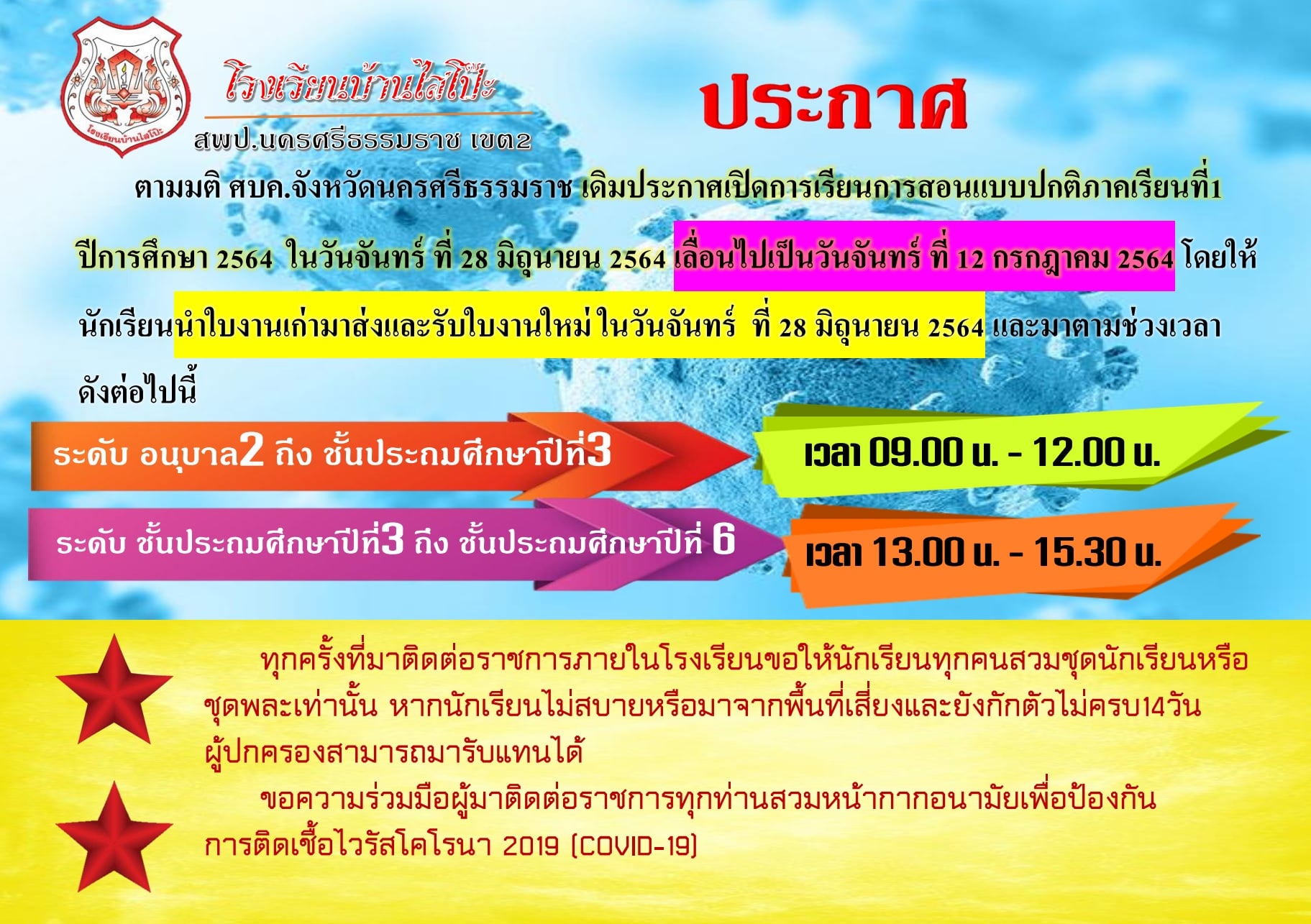 ประกาศเลื่อนเปิดเทอม เป็นวันที่ 12 กรกฎาคม 2564