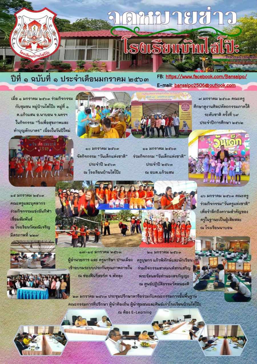 จดหมายข่าวปีที่1ฉบับที่1 ประจำเดือนมกราคม 2563