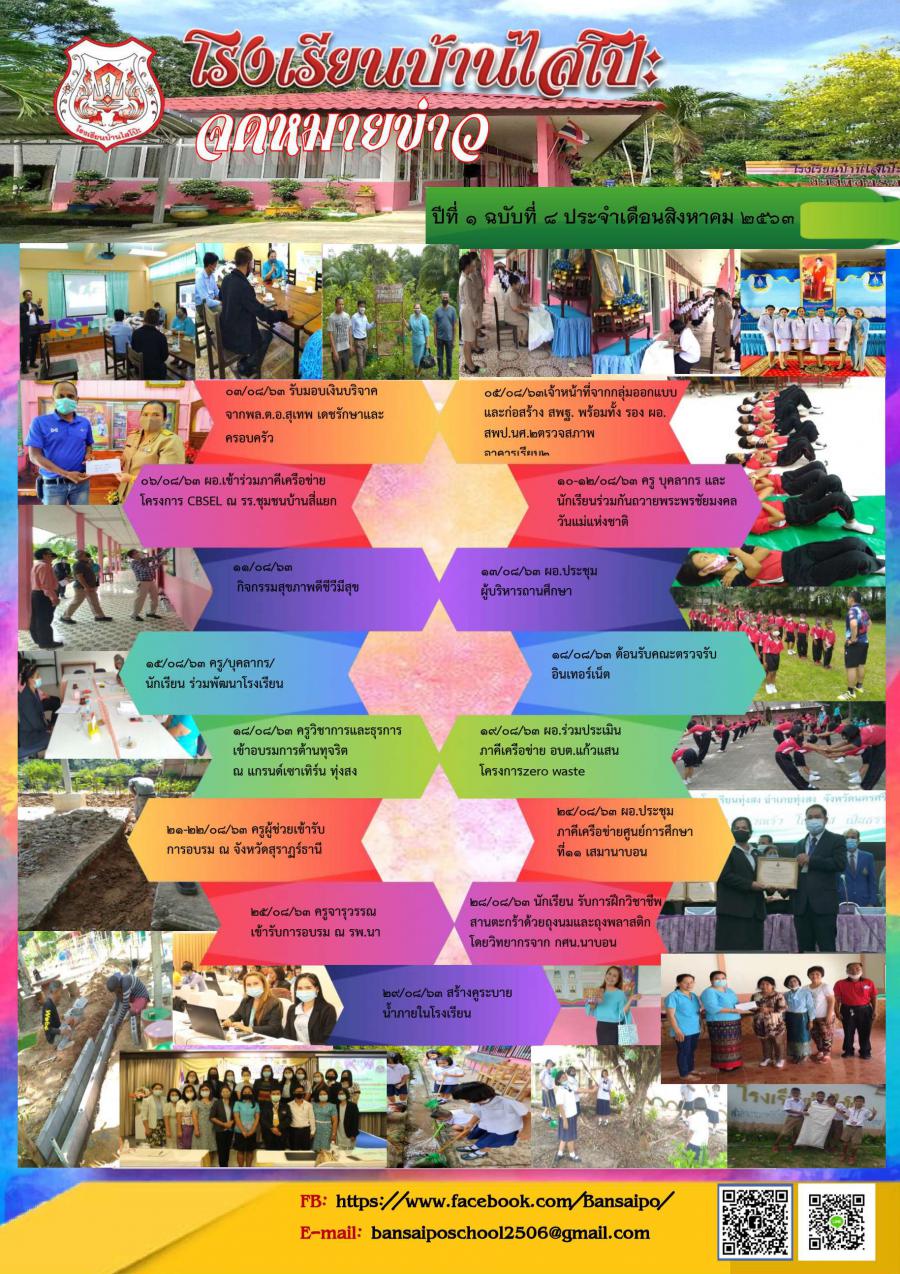 จดหมายข่าวปีที่1 ฉบับที่ 8 ประจำเดือนสิงหาคม 2563
