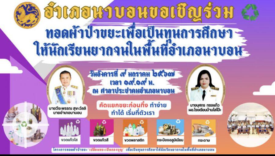 ????????ทอดผ้าป่าขยะกับนายอำเภอเบนซ์???????? ????????โรงเรียนบ้านไสโปีะ นำโดยนางบุศกร ทรงแก้ว ผู้อำนวยการโรงเรียนบ้านไสโป๊ะ พร้อมด้วยคณะครู และลูกๆนักเรียน ร่วมด้วยช่วยกันคัดแยกขยะ เพื่อนำไปร่วมทอดผ้าป่าขยะเพื่อเป็นทุนการศึกษาให้นักเรียนยากจนในพื้นที่อำเภอนาบอน ในวันอังคาร ที่ ๙ มกราค ๒๕๖๗ เวลา ๐๙.๐๙น. ณ ศาลาประชาคมอำเภอนาบอน ????????????ท่านใดมีความประสงค์จะร่วมทอดผ้าป่าสามารถนำขยะมาร่วมกับโรงเรียนบ้านไสโป๊ะได้เลยค่ะ ???????????????????? S:0